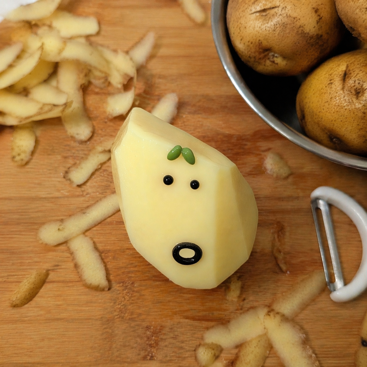 엉뚱하고 엉성한 표정과 긴 중안부, 작은 싹이 올라온.. 감자랍니다(!!)